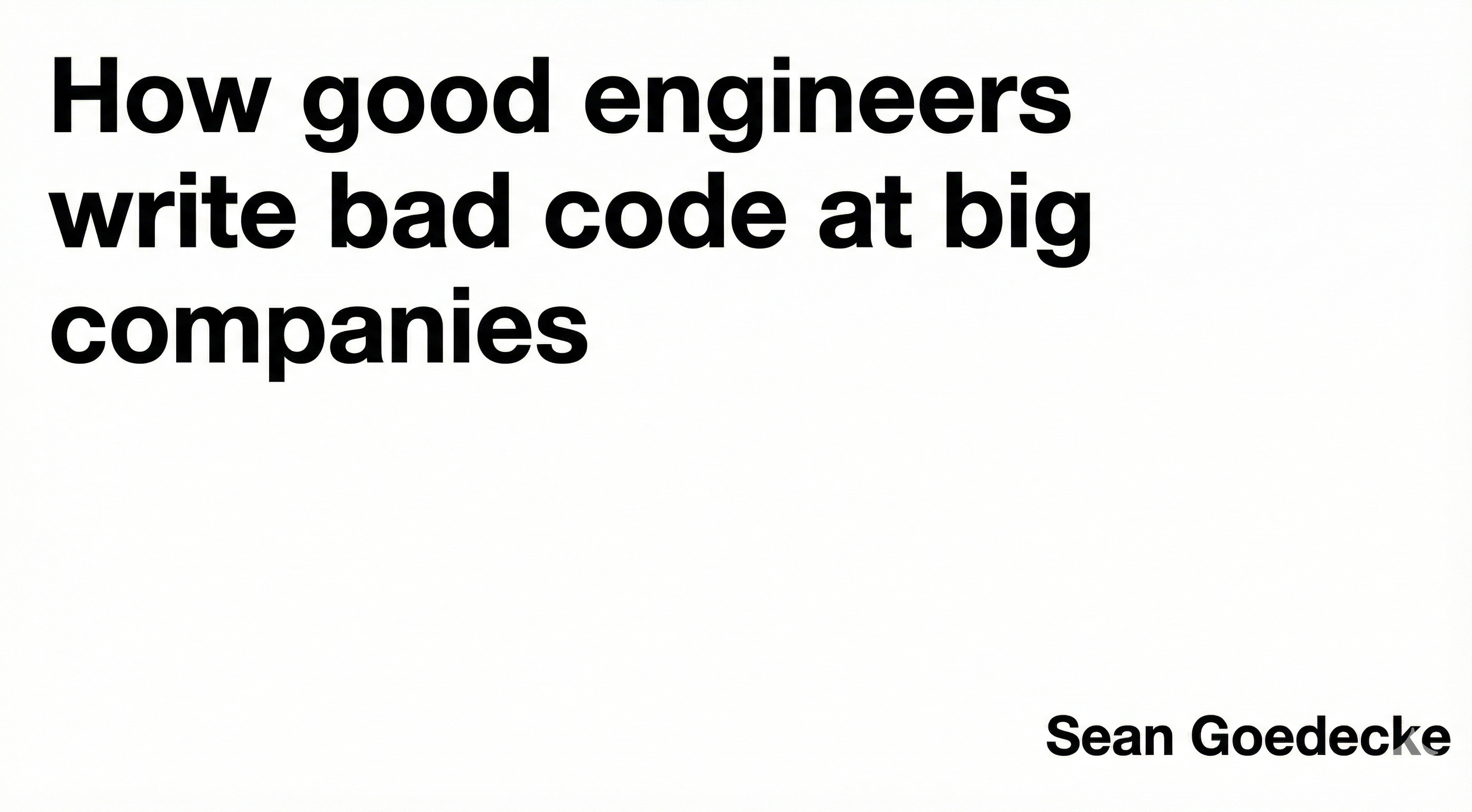 엉망인 코드를 작성하며 자책할 때가 있지 않으신가요? ‘왜 훌륭한 엔지니어들이 기업에서 나쁜 코드를 생산하게 되는지’를 다소 노골적인 시선에서 분석한 글을 소개해드립니다. 이 글은 대기업을 대상으로 작성되었긴 하지만, 어느 회사에서나 공감받을 수 있는 내용인 것 같습니다. 저자가 말하는 핵심은 잦은 조직 개편과 이직으로 인해, 시니어 개발자조차 끊임없이 낯선 코드베이스와 씨름하는 초보자가 될 수밖에 없다는 것인데요.
