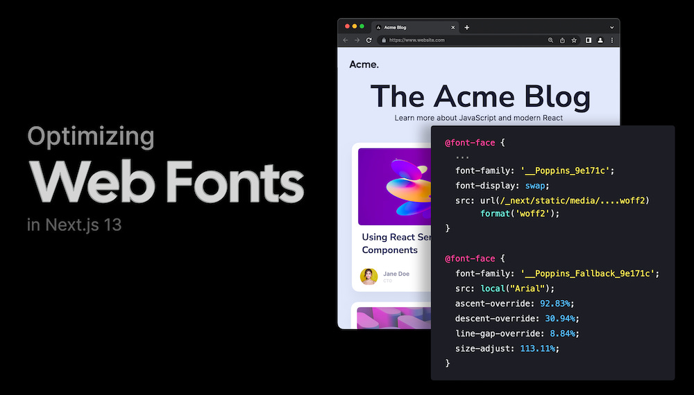 이 글은 이런 문제를 해결하기 위해서 웹 폰트 사용 시 최적화하는 방법과 Next.js 13에서 이를 손쉽게 적용하는 방법에 대해 소개합니다.